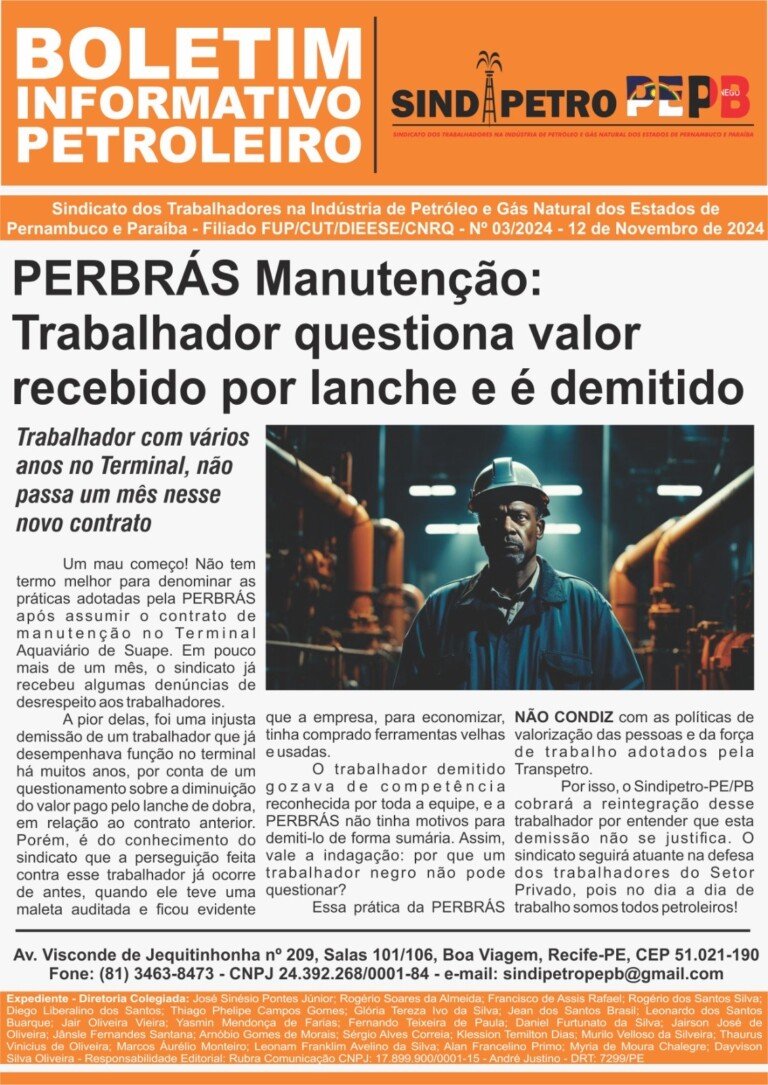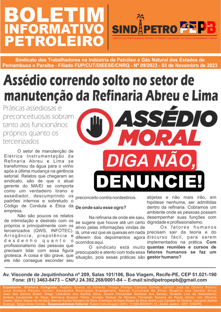O Sindipetro PE/PB é o Sindicato dos Trabalhadores na Indústria de Petróleo e Gás Natural dos Estados de Pernambuco e Paraíba, filiado à Federação Única dos Petroleiros (FUP) e à Central Única dos Trabalhadores (CUT). A entidade sindical busca amparar a força de trabalho do setor e empenha esforços de mobilização social e política a favor da dignidade das trabalhadoras e trabalhadores, do desenvolvimento industrial sustentável através de uma transição energética justa e da soberania nacional.